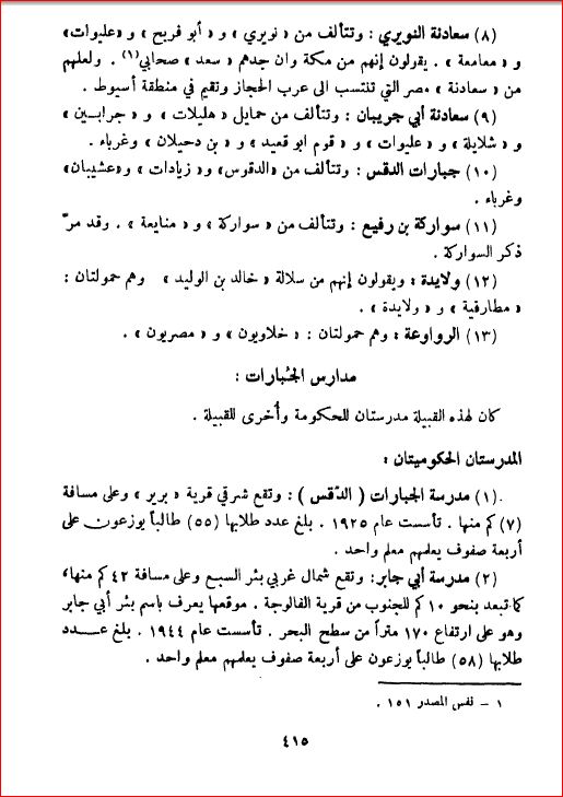 مدارس الجبارات، محافظة بئر السبع - بلادنا فلسطين، صفحة 415 |