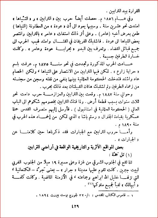 البقاع التاريخية والأثرية في أراضي قبيلة الترابين - بلادنا فلسطين، صفحة 429 |