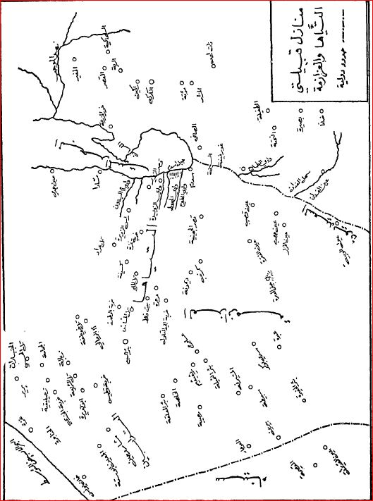 خارطة تبيّن منازل قبيلتي التياها والعزازمة، محافظة بئر السبع - بلادنا فلسطين، صفحة 435 |