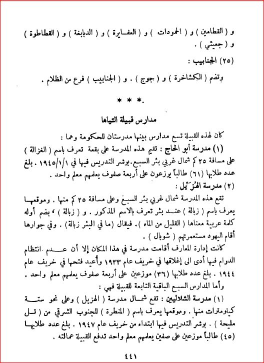 مدارس قبيلة التياها، محافظة بئر السبع - بلادنا فلسطين، صفحة 441 |