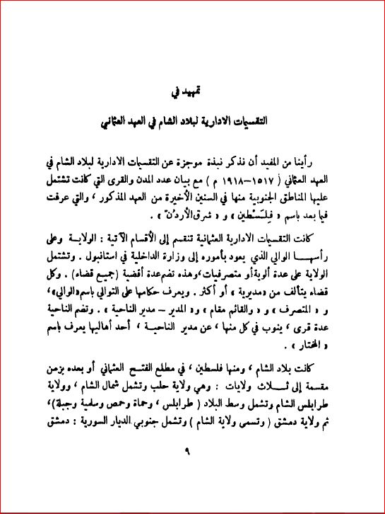 تمهيد في التقسيمات الإدارية لبلاد الشام في العهد العثماني - بلادنا فلسطين، صفحة 9 |