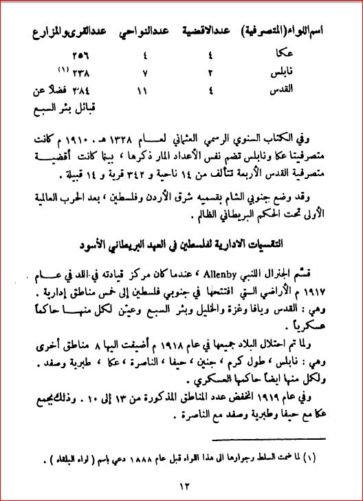 التقسيمات الإدارية للديار النابليسة لفلسطين في العهد البريطاني الأسود - بلادنا فلسطين، صفحة 12 |