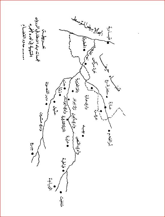 خريطة تبيّن تجمعات مياه الأمطار في الوديان المنتهيه في نهر المفجر - بلادنا فلسطين، صفحة 32 |