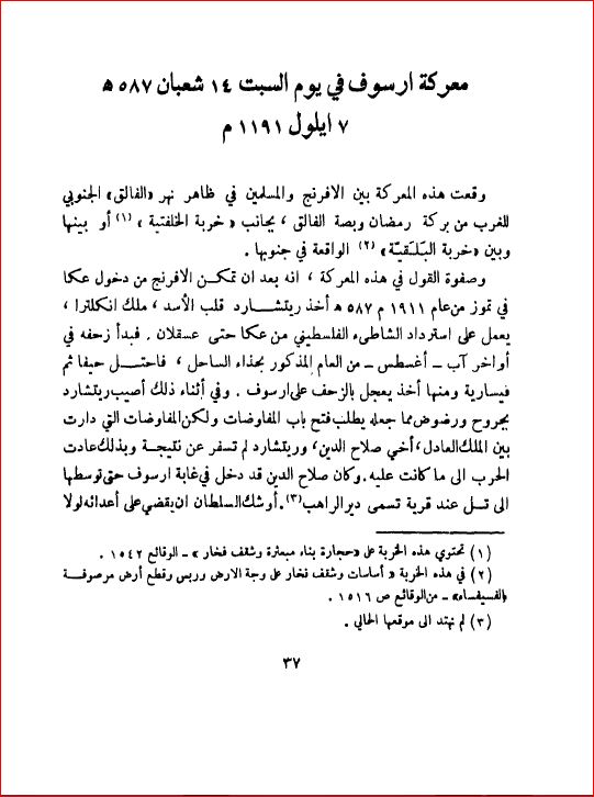 معركة أرسوف في يوم 7 أيلول 1191 م - بلادنا فلسطين، صفحة 37 |