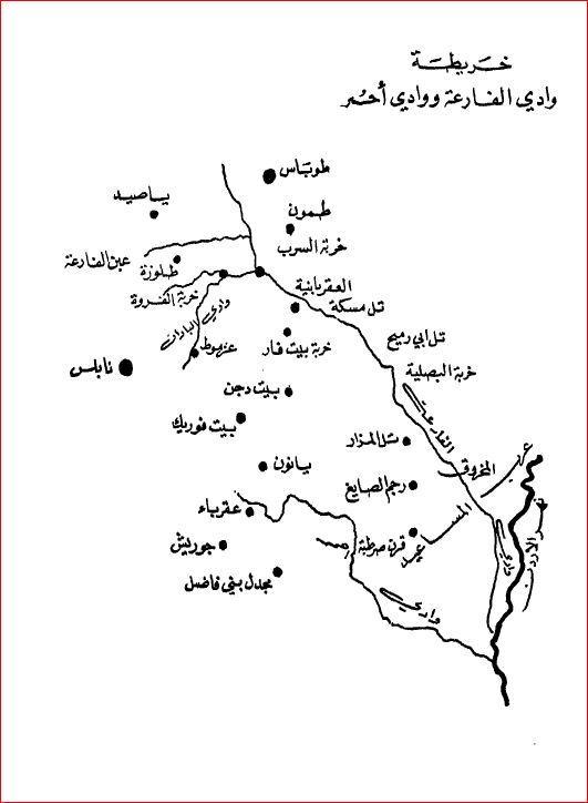 خارطة تبيّن وادي الفارعة ووادي أحمر، محافظة نابلس - بلادنا فلسطين، صفحة 43 |
