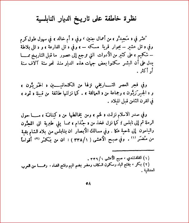 نظرة خاطفة على تاريخ الديار النابلسيّة - بلادنا فلسطين، صفحة 58 |