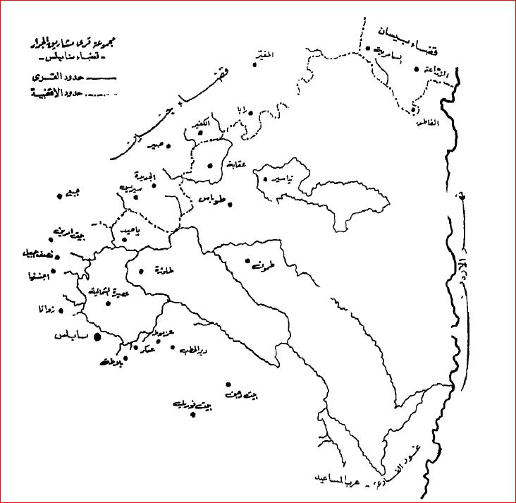 خريطة تبين قرى مشارق الجرار، محافظة نابلس - بلادنا فلسطين، صفحة 423 |