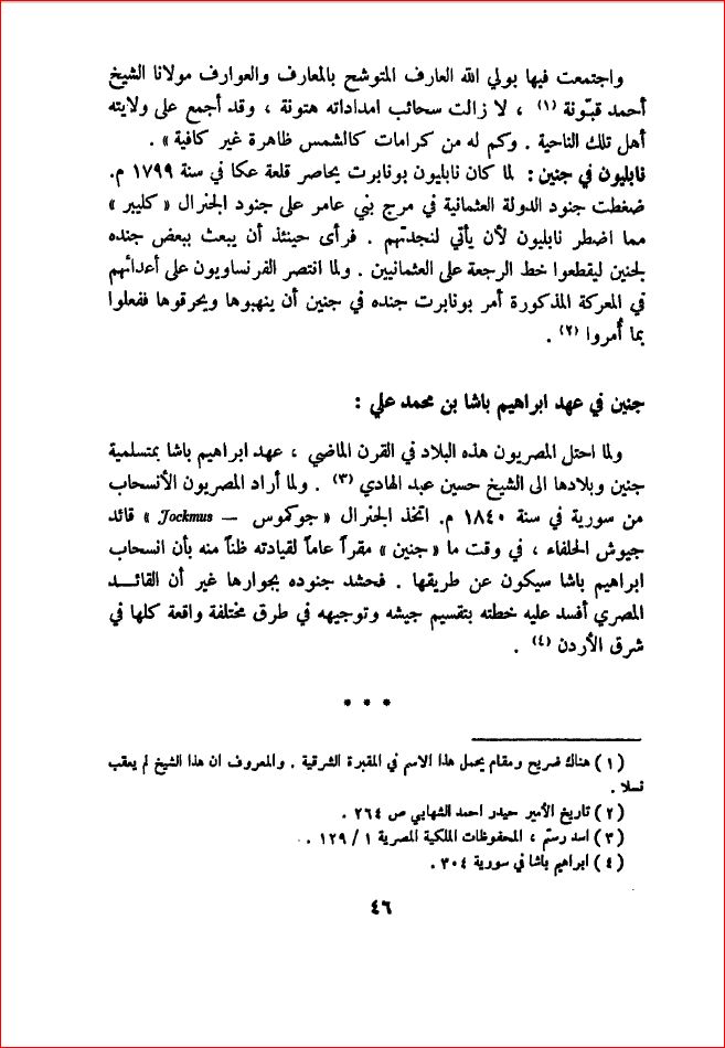 جنين في عهد إبراهيم باشا بن محمد علي - بلادنا فلسطين، صفحة 46 |