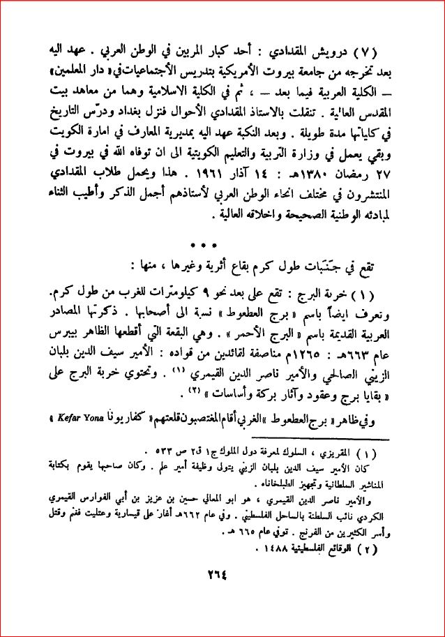 البقاع الأثرية جوار مدينة طولكرم - بلادنا فلسطين، صفحة 264 |