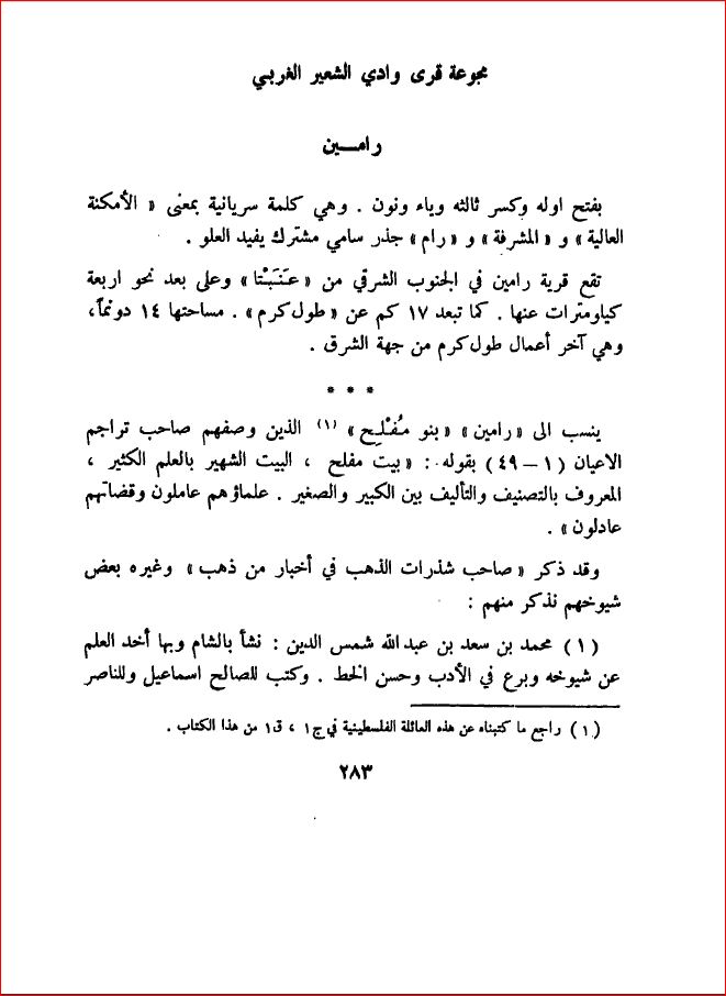 مجموعة قرى وادي الشعير ، محافظة طولكرم - بلادنا فلسطين، صفحة 283 |