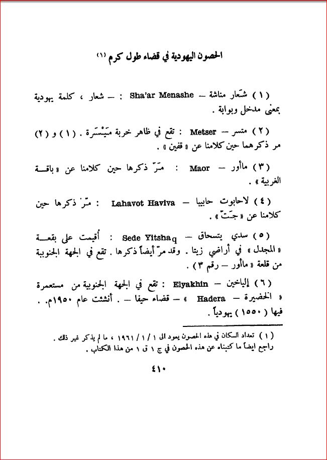 الحصون اليهودية التي تقع في قضاء طولكرم - بلادنا فلسطين، صفحة 410 |