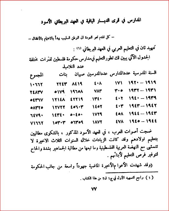 المدارس في قرى الديار اليافية في العهد البريطاني الأسود - بلادنا فلسطين، صفحة 77 |