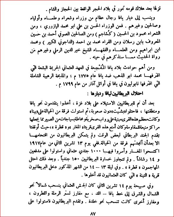 إحتلال البريطانيين ليافا وديارها - بلادنا فلسطين، صفحة 87 |