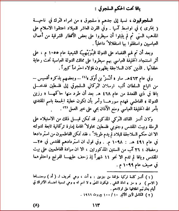يافا تحت الحكم السلجوقي - بلادنا فلسطين، صفحة 113 |