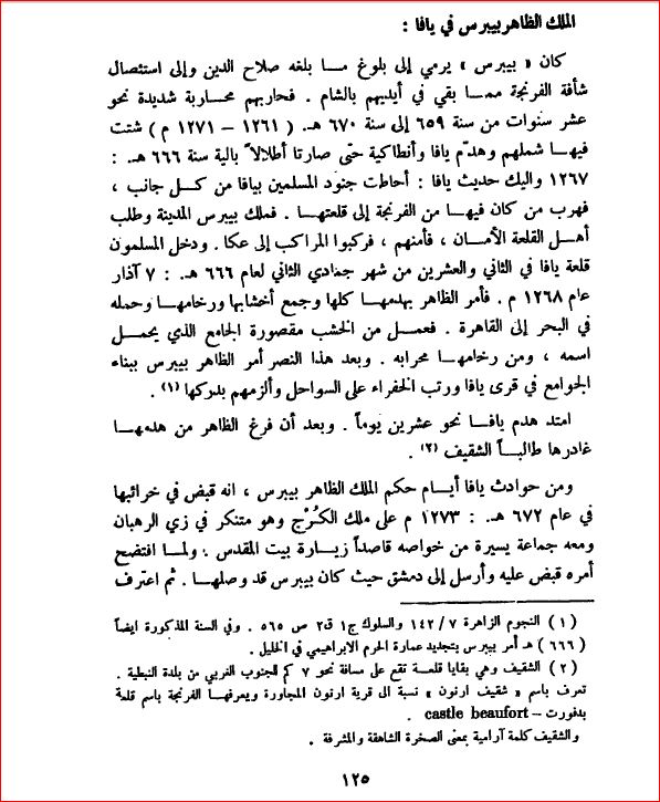 الملك الظاهر بيبرس في يافا - بلادنا فلسطين، صفحة 125 |