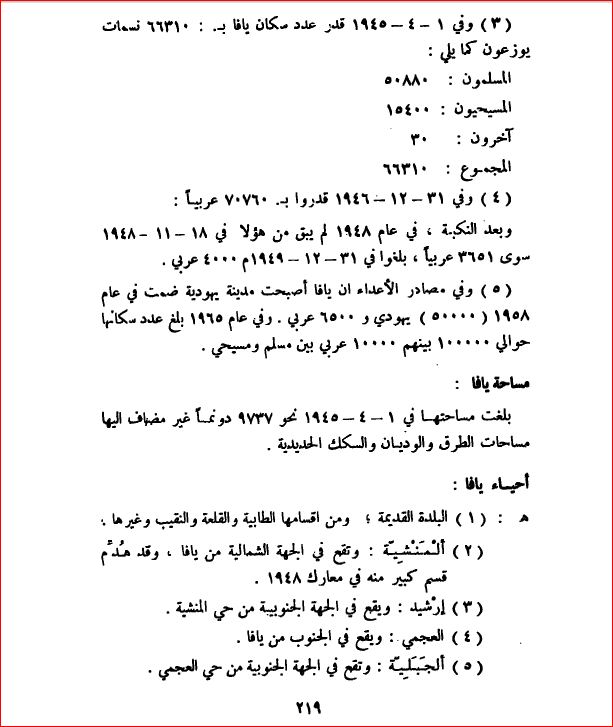 مساحة وأحياء يافا - بلادنا فلسطين، صفحة 219 |