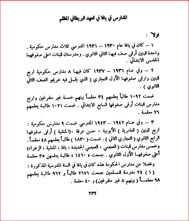 المدارس في يافا في العهد البريطاني الظالم - بلادنا فلسطين، صفحة 232 |