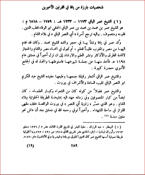 شخصيات بارزة من يافا في القرنين الأخيرين - بلادنا فلسطين، صفحة 289 |