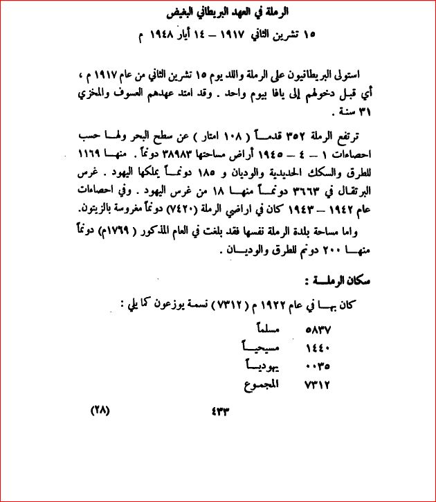 الرملة في العهد البريطاني البغيض 15 تشرين الثاني 1917 - 14 أيار 1948 ،بلادنا فلسطين صفحة 433 |