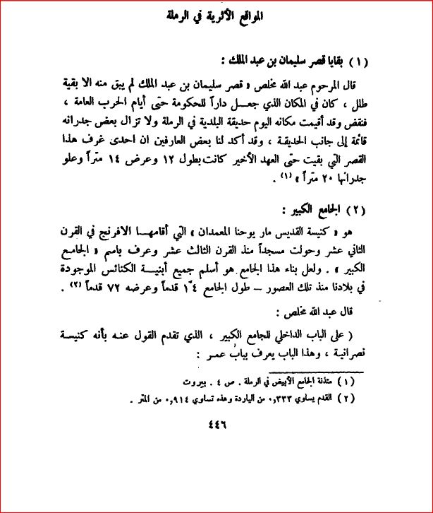 المواقع الأثرية في الرملة - بلادنا فلسطين، صفحة 446 |
