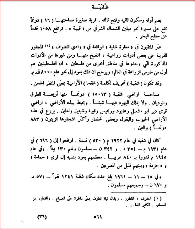شُقبة، محافظة الرملة - بلادنا فلسطين، صفحة 561 |