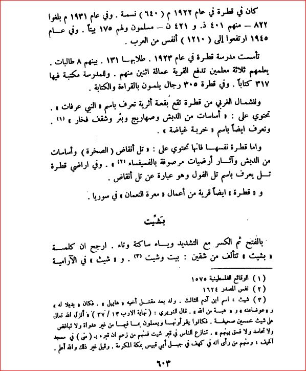 بشيت، محافظة الرملة - بلادنا فلسطين، صفحة 603 |