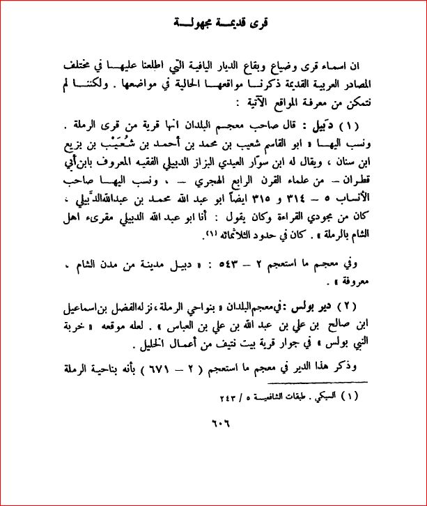 قرى قديمة مجهولة: دِبيل ودير بولس - بلادنا فلسطين، صفحة 606 |
