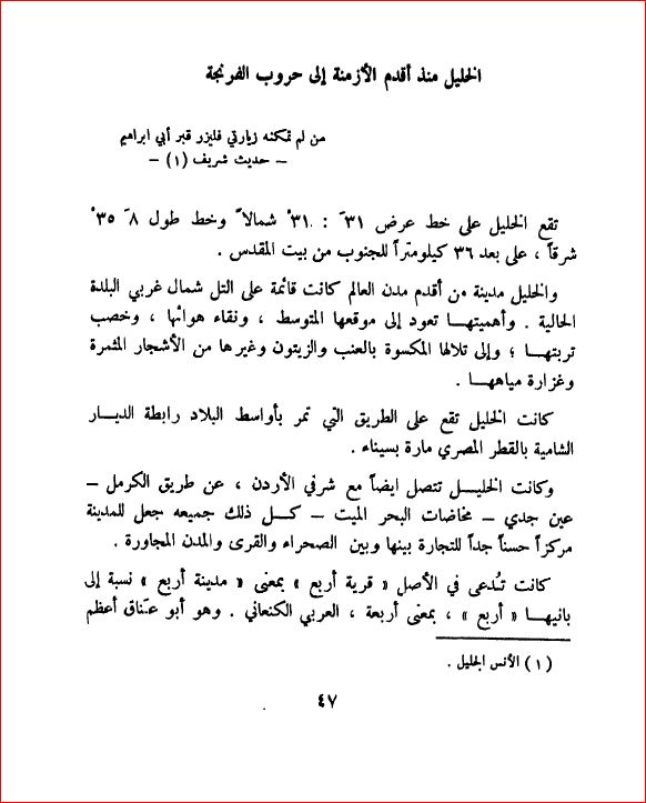 الخليل منذ أقدم الأزمنة إلى حروب الفرنجة - بلادنا فلسطين، صفحة 47 |