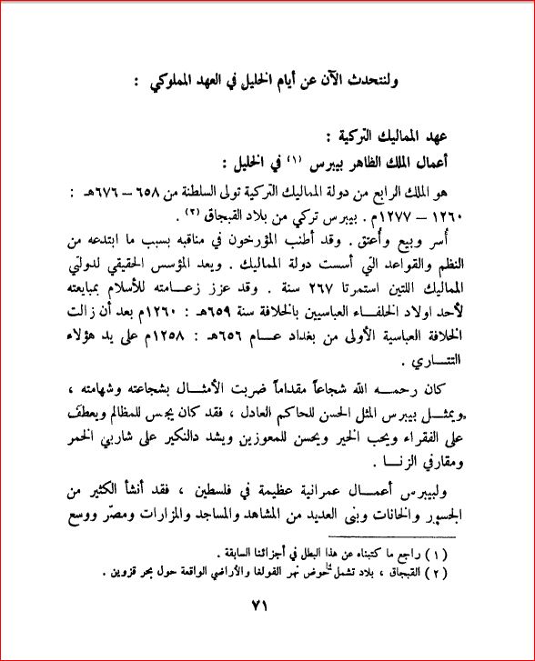عهد الممالك التركية في الخليل الرحمن - أعمال المللك الظاهر بيبارس - بلادنا فلسطين، صفحة 71 |