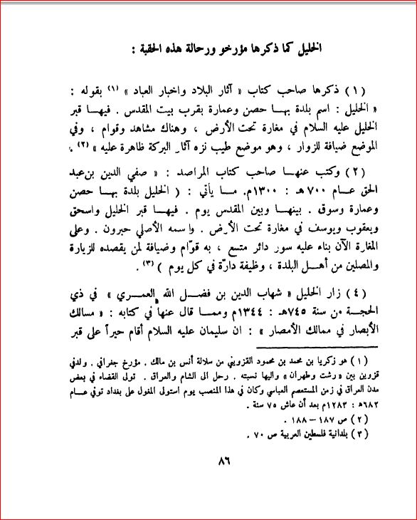 الخليل كما ذكرها مؤرخو ورحالة هذه الحقبة - بلادنا فلسطين، صفحة 86 |