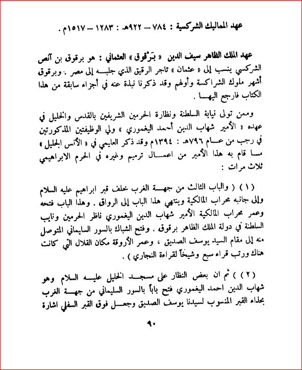 عهد الممالك الشركسيَة: 1283 - 1517م - عهد الملك الظاهر سيف الدين ((برقوق)) العثماني - بلادنا فلسطين، صفحة 90 |