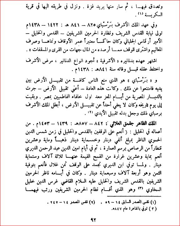 عهد الملك الظاهر جقمق العلائي 1439 - 1453م - بلادنا فلسطين، صفحة 92 |