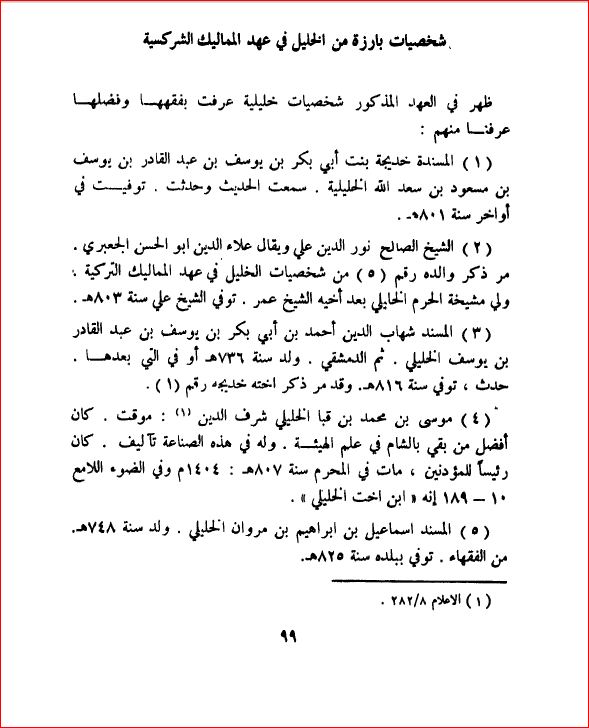 شخصيات بارزة في الخليل في عهد المماليك الشركسية - بلادنا فلسطين، صفحة 99 |