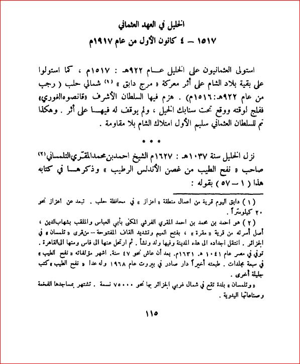 الخليل في العهد العثماني 1517 - 4 كانون الأول من عام 1917 م - بلادنا فلسطين، صفحة 115 |