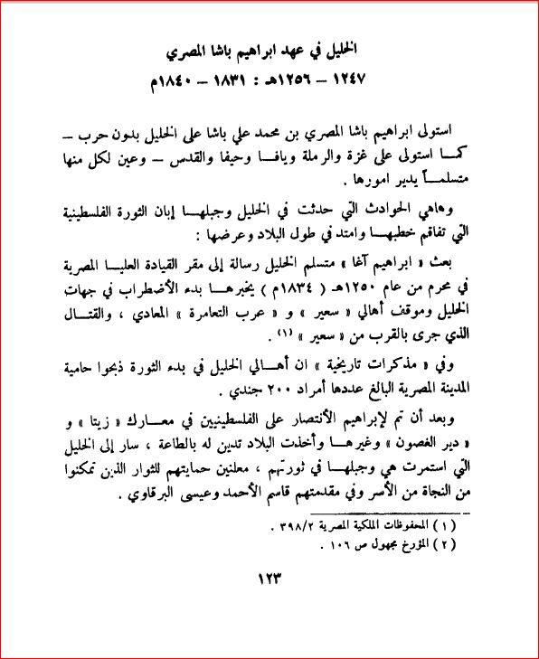 الخليل في عهد إبراهيم باشا المصري 1831 - 1840 م - بلادنا فلسطين، صفحة 123 |