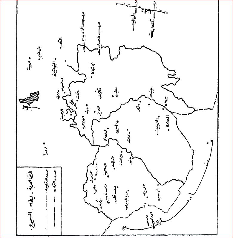 خارطة تبين الضاهرية ويطّة واموع وما حولهم ن خرب وقرى، محافظة الخليل - بلادنا فلسطين، صفحة 224 |