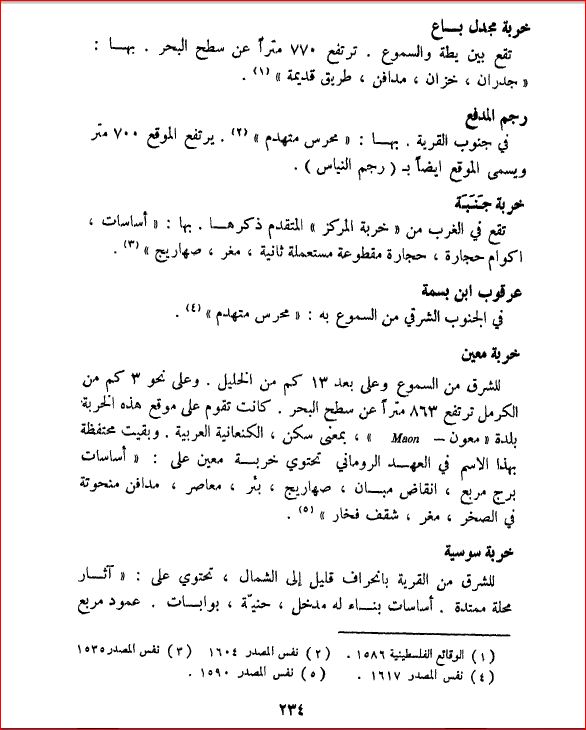 خربة جنبة وعرقوب ابن بسمة وخربة معين وخربة سوسية، محافظة الخليل - بلادنا فلسطين، صفحة 234 |