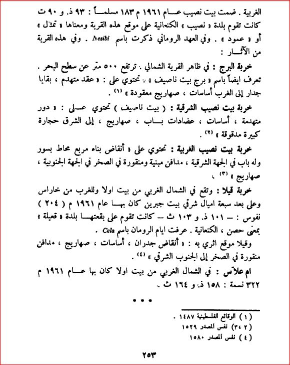 خربة البرج و خربة بيت نصيب الشرقية و خربة بيت نصيب الغربية وخربة قيلا، محافظة الخليل - بلادنا فلسطين، صفحة 253 |