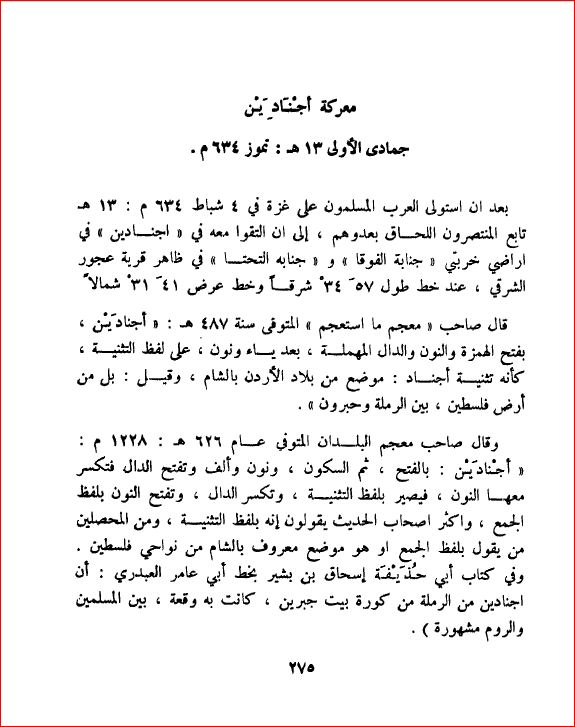 معركة أجنادين: تموز 636م - بلادنا فلسطين، صفحة 275 |