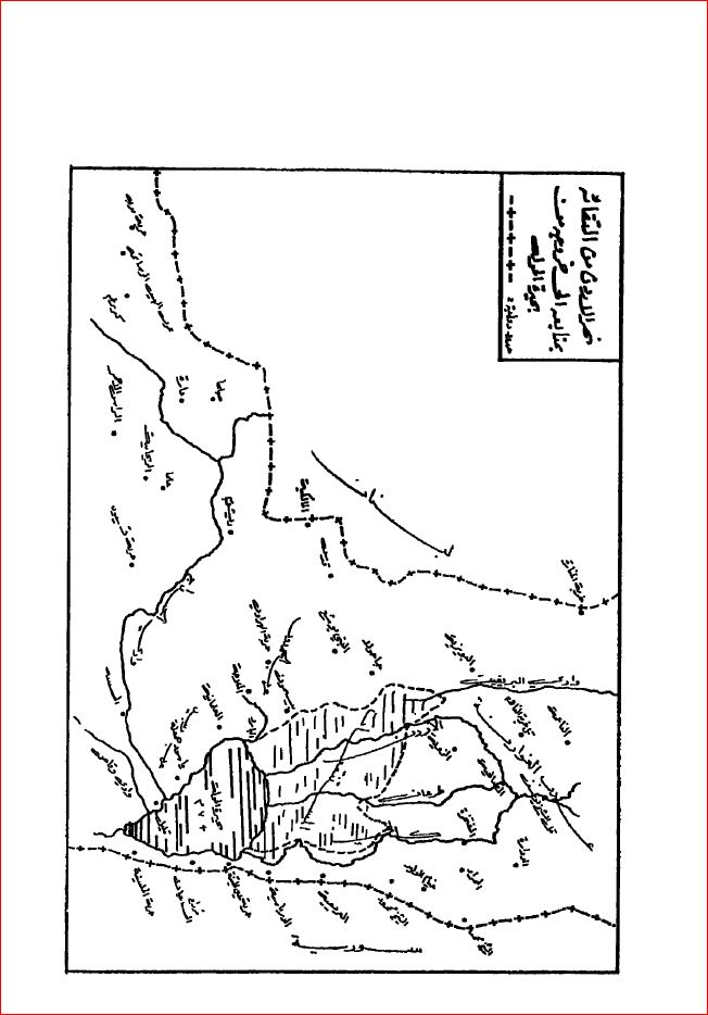 خارطة تبين منابع نهر الأردن الى خروجه من بحيرة الحولة (الآن مجففة) - بلادنا فلسطين، صفحة 48 |