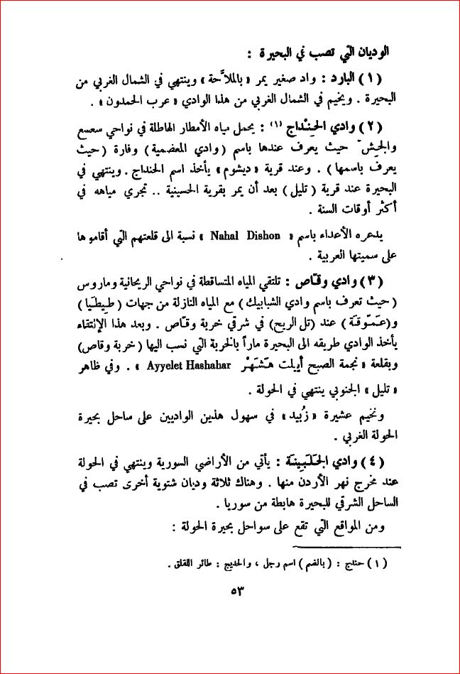الوديان التي تصب في بحيرة الحولة - بلادنا فلسطين، صفحة 53 |