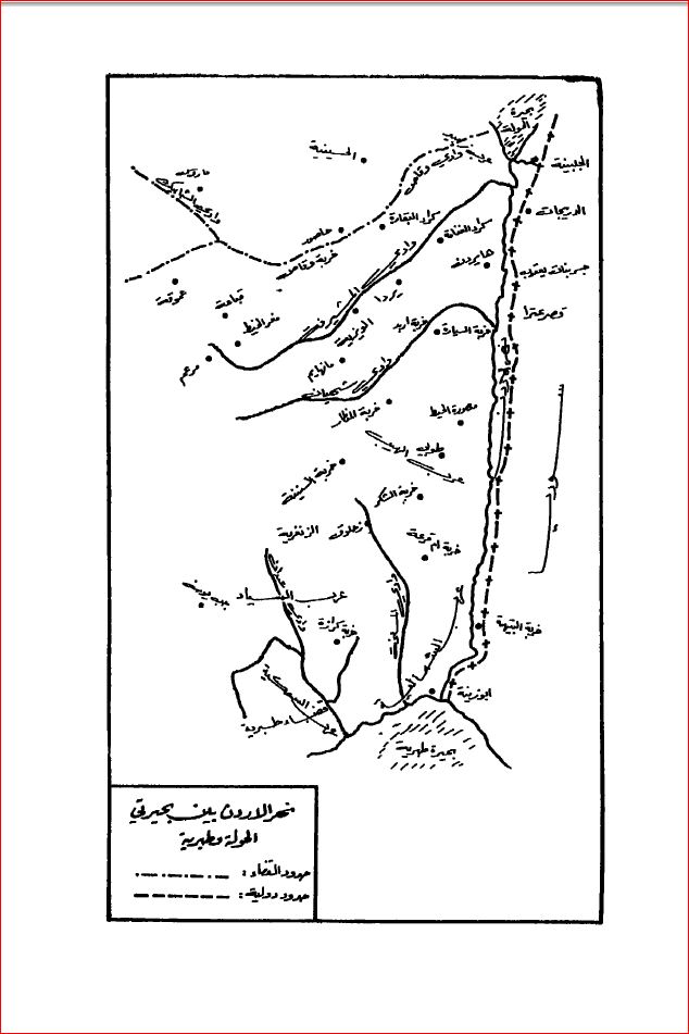 خارطة تبين نهر الأردن بين بحيرة الحولة وبحيرة طبرية - بلادنا فلسطين، صفحة 57 |