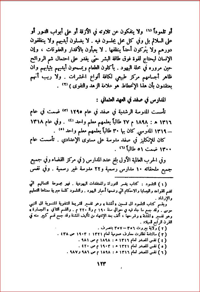 المدارس في صفد في العهد العثماني - بلادنا فلسطين، صفحة 123 |