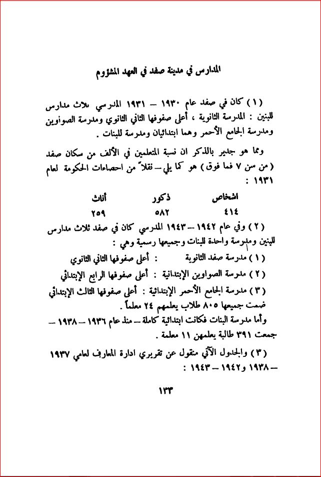 المدارس في مدينة صفد في العهد المشؤوم - بلادنا فلسطين، صفحة 133 |