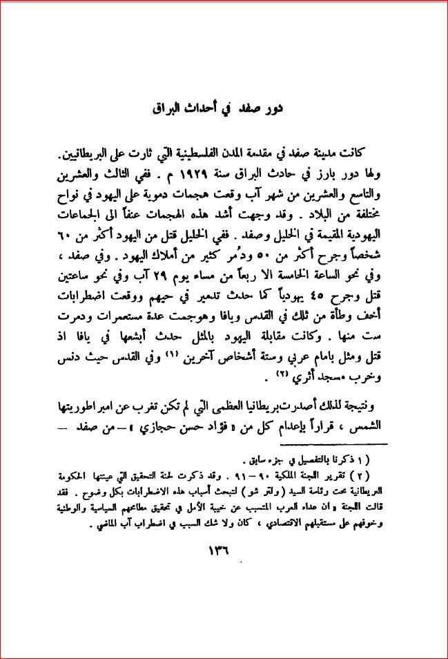 دور صفد في أحداث ثورة البراق - بلادنا فلسطين، صفحة 136 |