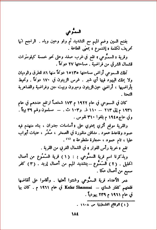السموعي، محافظة صفد - بلادنا فلسطين، صفحة 184 |