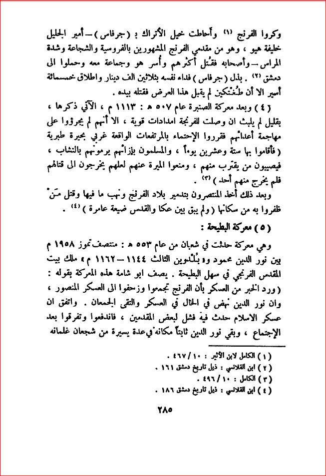 بحيرة طبرية ومنطقتها غضون حروب الفرنجة، محافظة طبرية - بلادنا فلسطين، صفحة 285 |