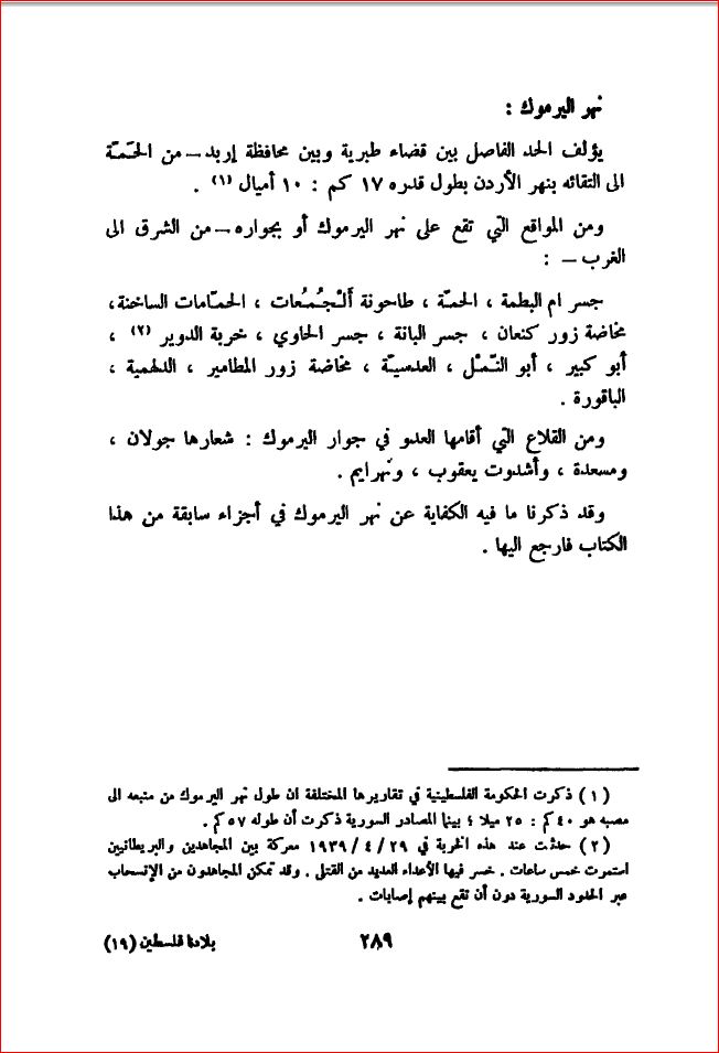 نهر اليرموك محافظة طبرية - بلادنا فلسطين، صفحة 289 |