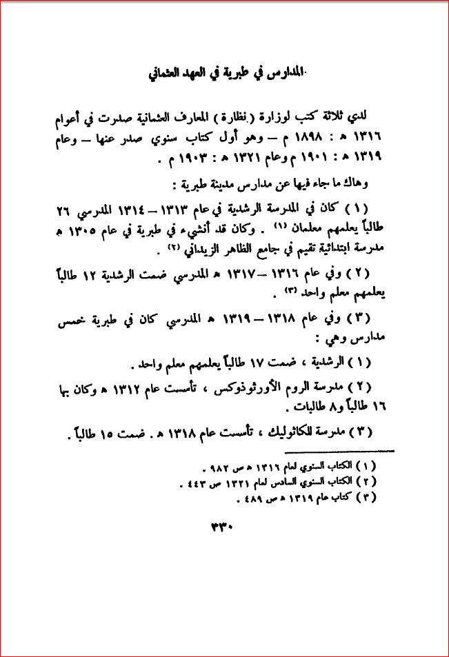 المدارس في طبرية في العهد العثماني - بلادنا فلسطين، صفحة 330 |
