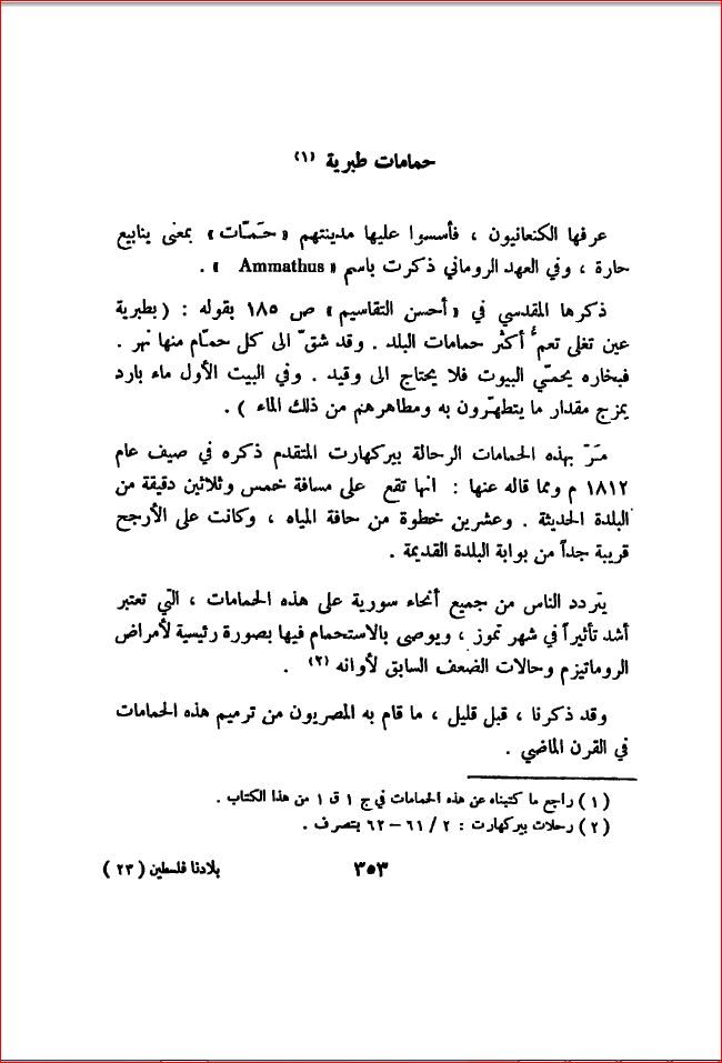 حمامات طبرية - بلادنا فلسطين، صفحة 353 |